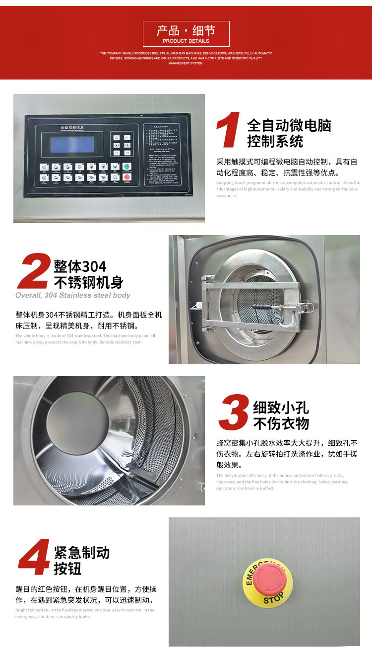 不銹鋼外缸、防腐蝕;內(nèi)膽采用不銹鋼材料焊接而成;門圈采用流行的圓口對接式,防止洗滌時(shí)損傷衣物。